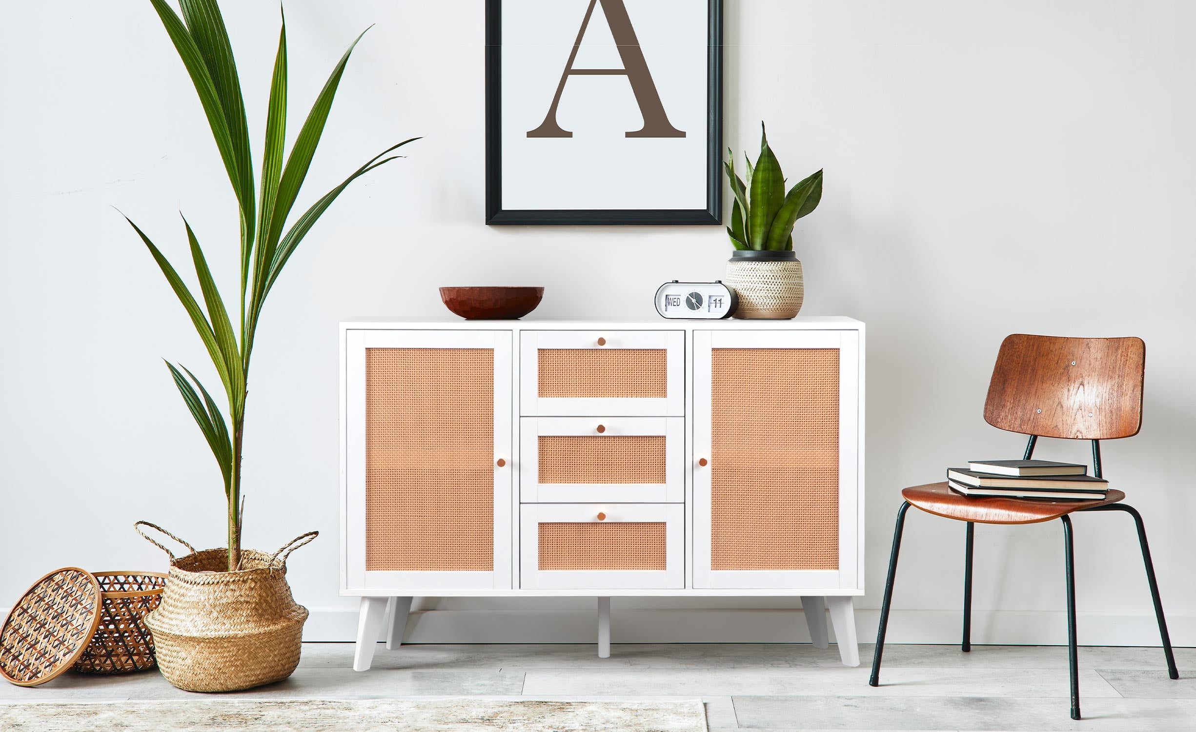 Buffet à cannage Carnes avec 3 tiroirs et 2 portes blanc L120cm