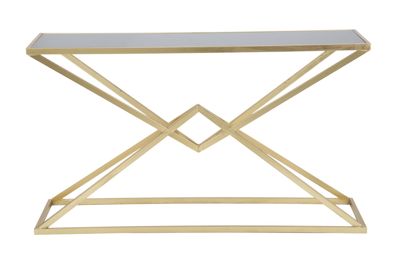 Console rectangulaire métal doré plateau verre trempé noir