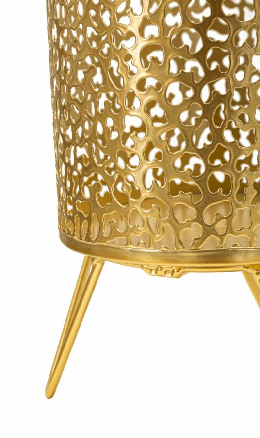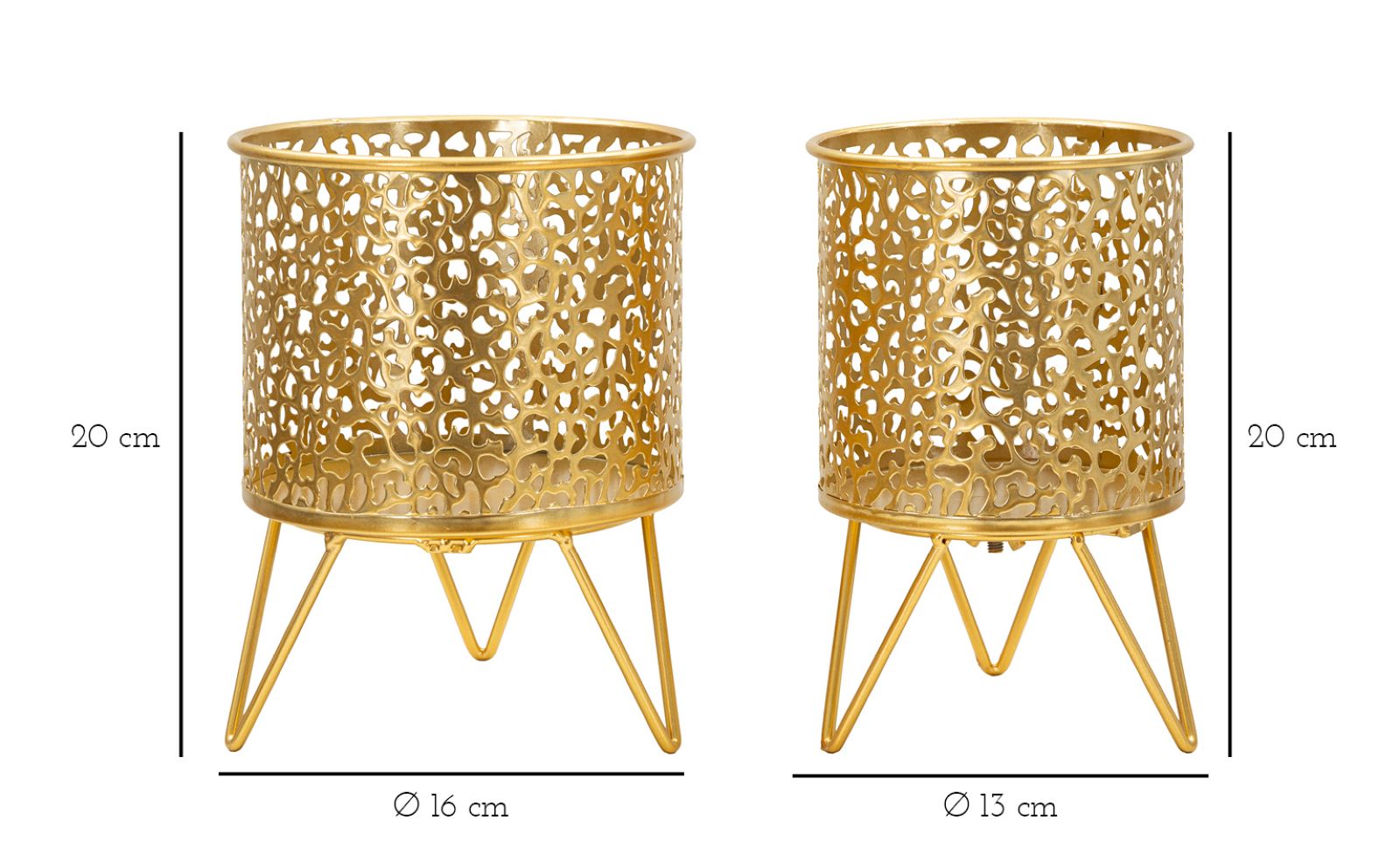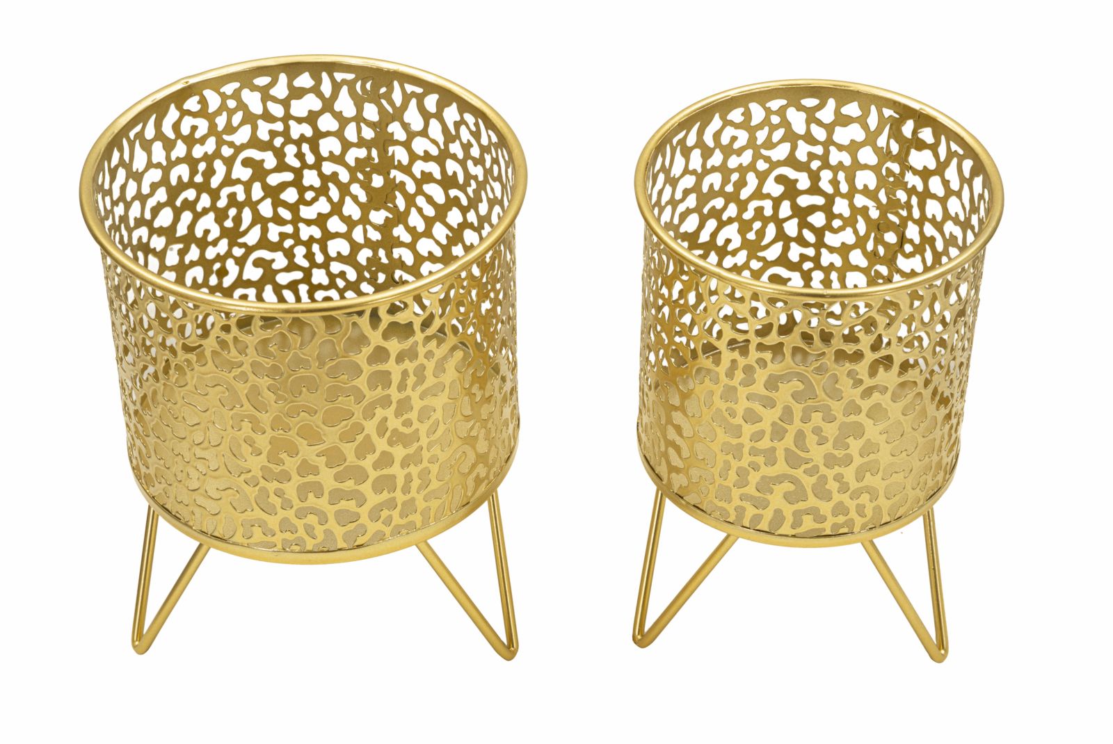 Ensemble de 2 vases porte-épingles métal doré décoré de sculptures irrégulières