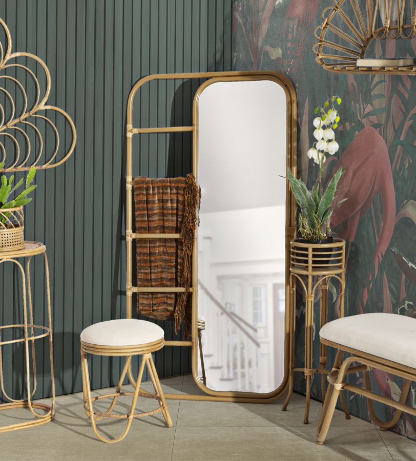 Miroir sur pied rectangulaire Panama Métal et Rotin