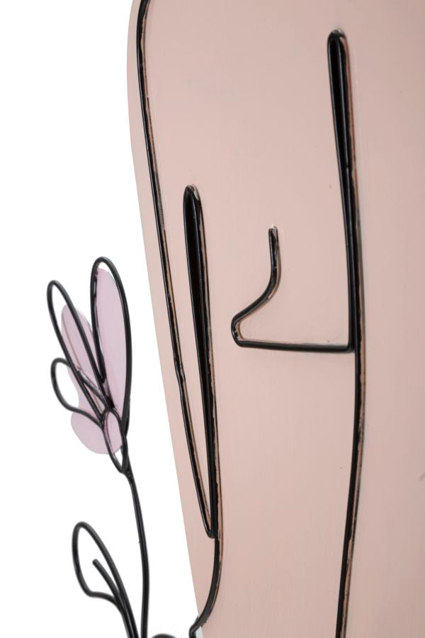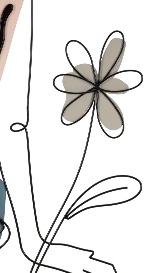 Panneau mural décoratif 3D métal Noir fille assise fleurs colorées