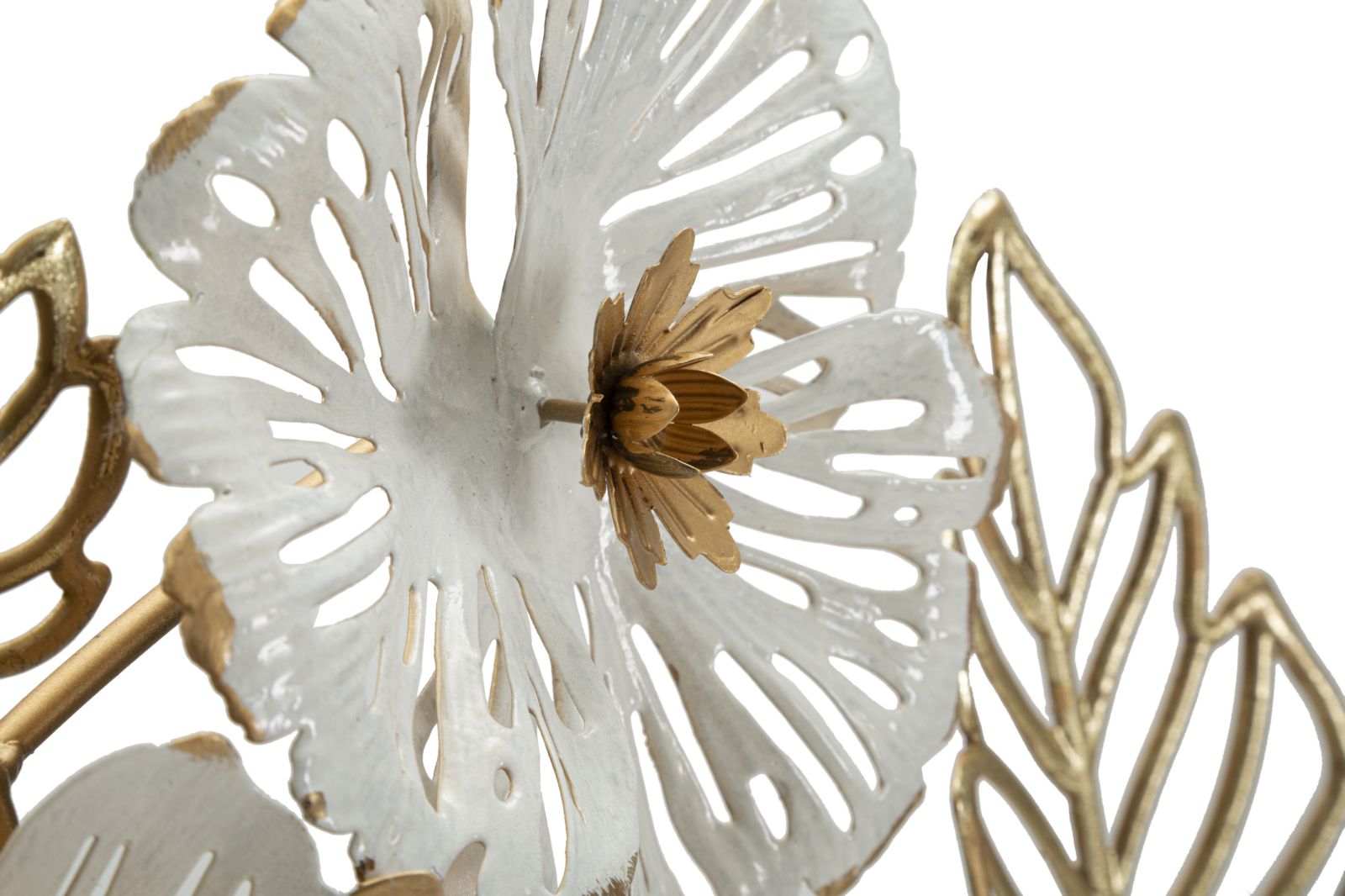 Panneau mural décoratif en métal doré et blanc fleurs et feuilles