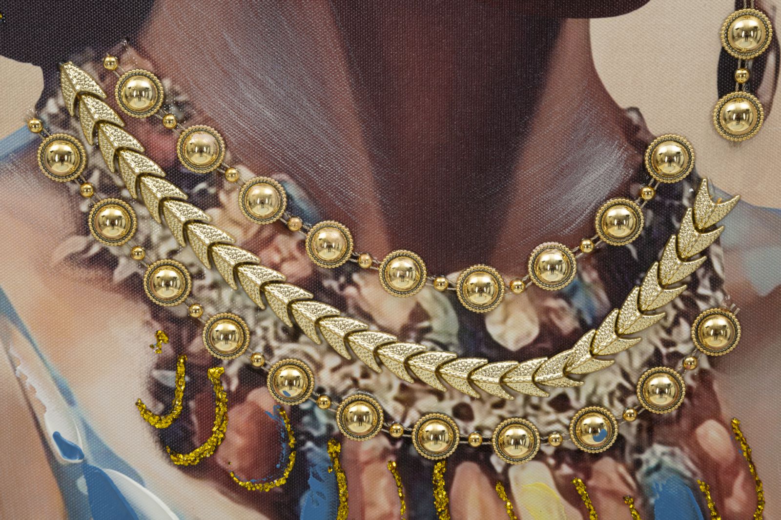 Peinture sur toile femme traditionnelle cadre bois et métal doré