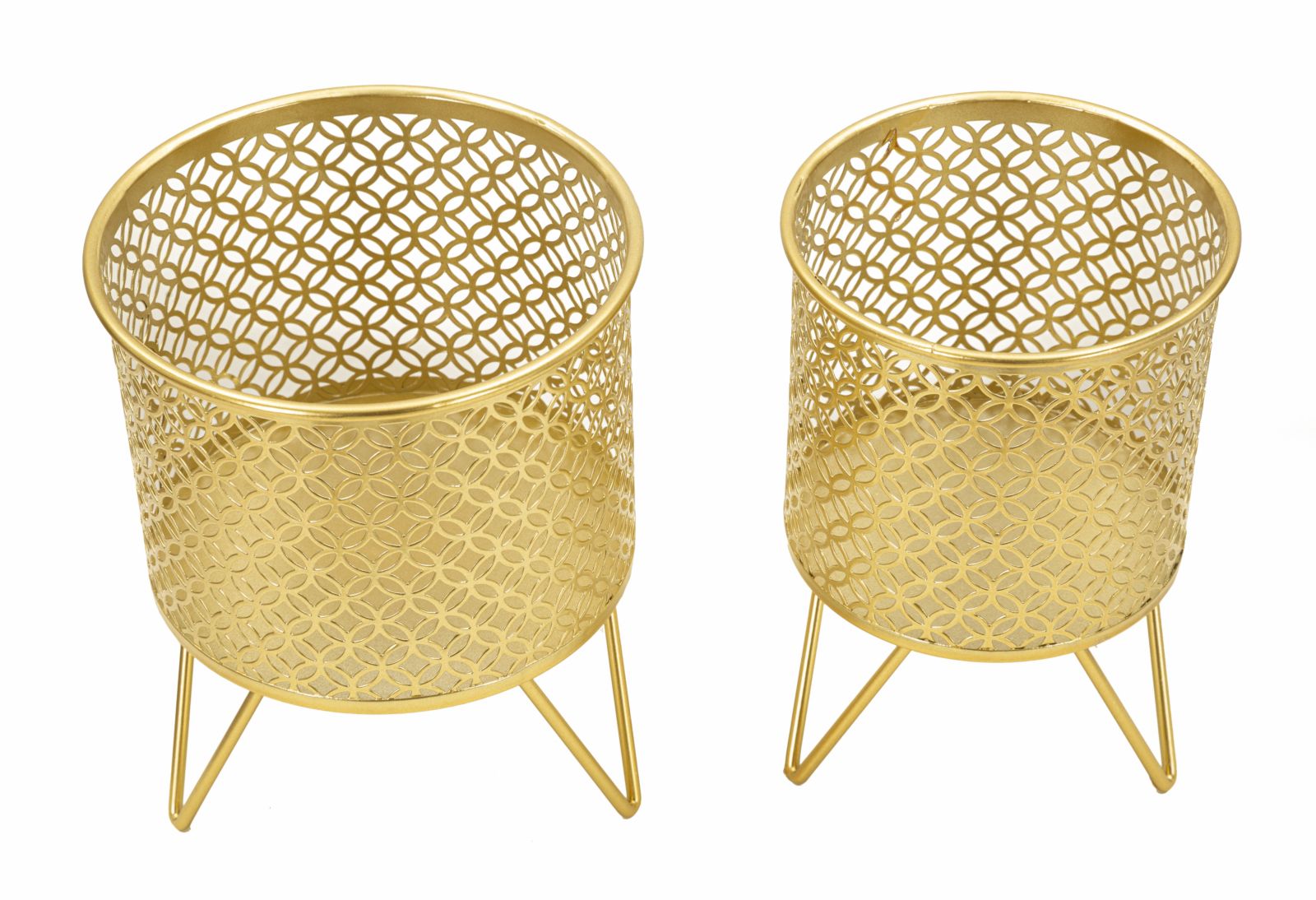 Porte-vases en métal doré avec sculptures rondes, ensemble de 2 pcs