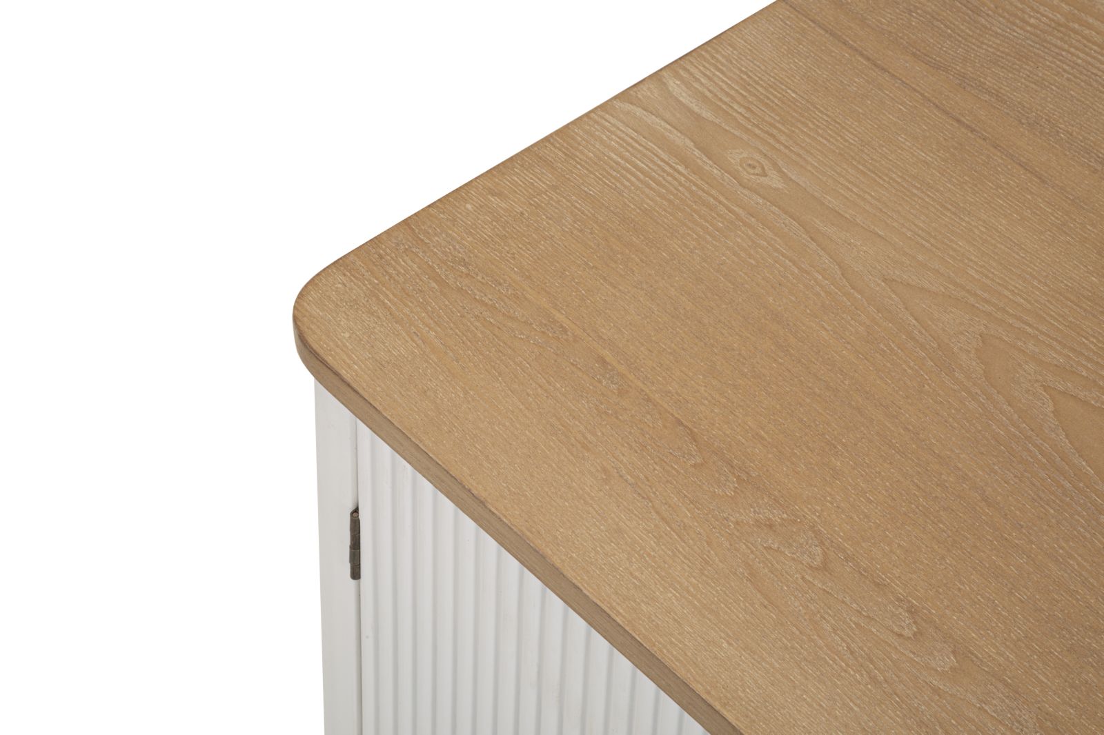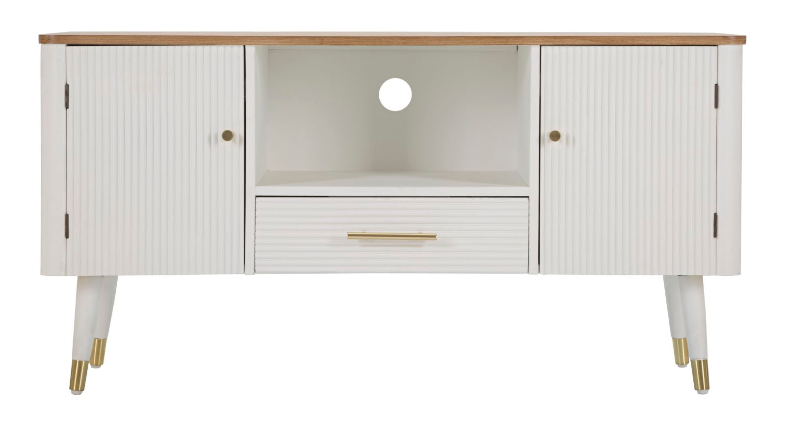 Meuble TV MATERA Bois Blanc avec Plateau Marron et Pieds Métal Doré