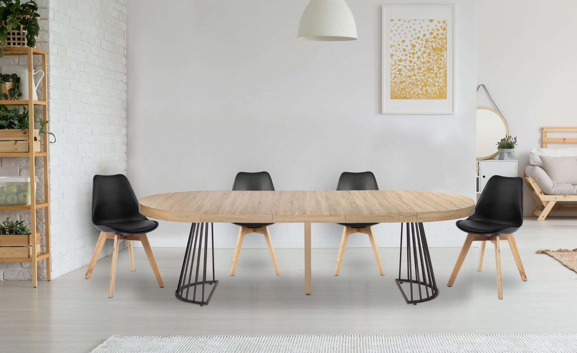 Table extensible ronde Axeline chêne clair pieds noir